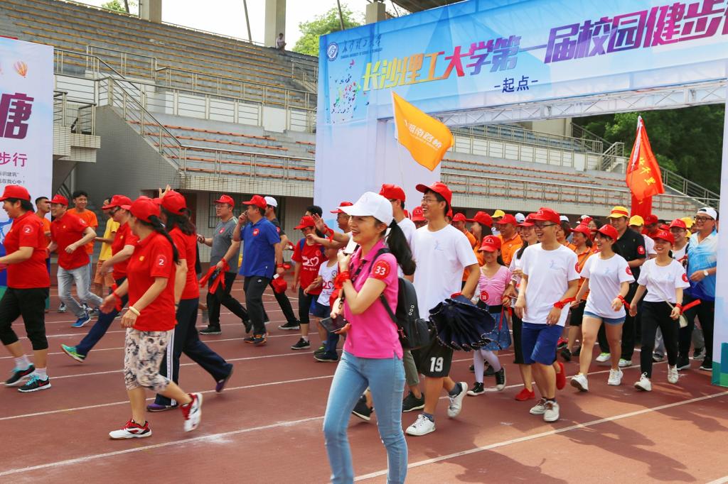 随着校友总会会长洪源渤一击枪声,112支队伍打着队旗,统一着装,甩开臂膀、迈开大步,从体育场出发,途经学生活动中心、新能源大楼、模型广场、走近南门,再到大会堂,沿着云影湖走到云步桥,抵达文化广场,一边沐浴着明媚的阳光,欣赏着悦人的美景,一边交流着人生体会,畅谈美好的未来,再一次感念在母校的美好时光,体验长理的校园文化,在一片欢声笑语中感受着健步走带来的快乐与惬意。