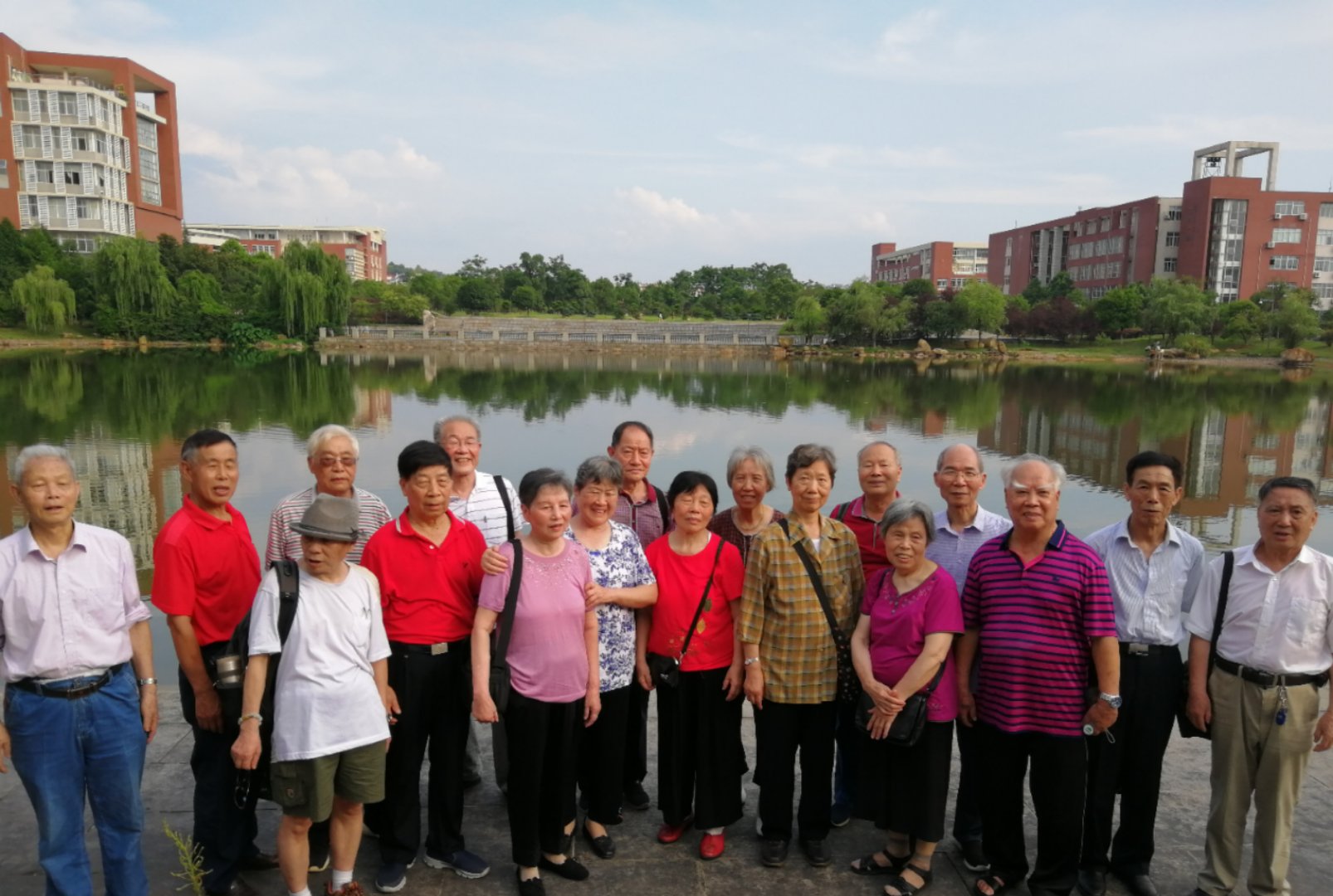 6月23日,金盆岭校区迎来了一批耄耋老人,有的拄着拐仗,有的子女搀扶,原来他们是原长沙航务工程学校港口、船机、航运专业的60余位老校友,平均年龄78岁,阔别近60年,他们回来了!同学重逢,情难自禁,他们凭借年轻时的记忆寻找那一张张熟悉的面孔,紧紧握手、拥抱在一起,并在校友工作志愿者的引领下,办理报到,一起参观参观金盆岭、云塘校区,他们感慨:“航校时期只有几十亩地,发展到如此规模,难以想象,特别自豪!”