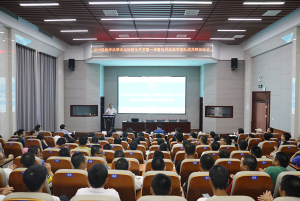 9月24日下午,校长曹一家为2019级教学改革试点班学生上 “新生第一课”,教务处处长刘朝晖以及相关职能部门、学院领导、教改班任课教师、导师团队、班主任、辅导员一起听课。