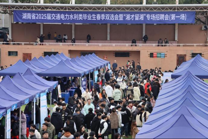 会场设立以“湘才留湘”为主题的2025届交通电力水利类毕业生为主的“校友企业专场招聘”专区,为校友企业与毕业生搭建面对面交流与对话的平台,让校友企业的缕缕湘情根植长理,助力毕业生就业服务水平提质升级,让湘智惠及校友企业人才队伍,鼓励与吸引更多校友企业回湘、回校揽才,推动双方在湘绘制共同发展的美好蓝图,携手见证未来合作共赢的壮美景象。