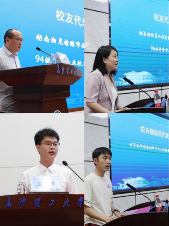 校友中心主任唐青详细介绍了世界杯官网校友会的职能、发展历程以及地方分会建设,发布了校友综合服务平台新功能。校友中心吴焰辉老师介绍了校友联络员工作职责和内容。95级汉语言文学专业校友曾高飞心系母校,向学校捐赠价值30万元的图书6000册。湖南湘见精酿啤酒有限公司董事长、食品与生物工程学院94级发酵专业校友廖辉旭以及校友促进经济发展专业委员会秘书长、96级财经系校友张见作为校友代表发言。电气学院智能电网2102班的王晋韬、计算机学院数据科学与大数据技术2101班的顾永彤作为校友联络员代表发言。