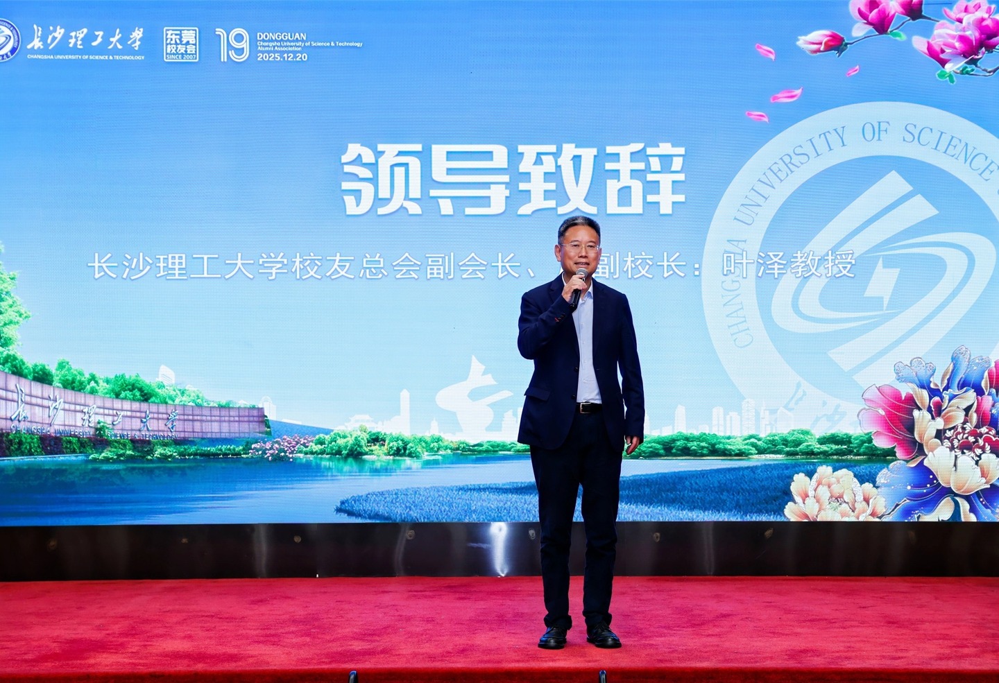 叶泽发表讲话。他赞赏东莞校友会作为学校第一批“示范校友会”,在凝聚校友力量、加强母校与校友联系等方面做出的可喜成绩,并向与会校友详细介绍了学校近期在教学改革、科研创新、人才培养等方面取得的丰硕成果。他指出,校友是学校最宝贵的财富,母校的发展离不开校友的倾情支持与热心参与。他勉励校友们继续秉承“博学、力行、守正、拓新”的校训精神,在各自的专业领域深耕细作、奋勇争先,为社会进步添砖加瓦;同时也希望校友们一如既往地关心母校、积极搭建合作桥梁,推动母校与校友在双向奔赴中凝心聚力,携手同行。