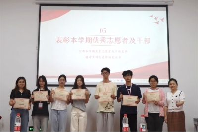 刘英姿和王锦文为本学期优秀志愿者及干部颁发了表彰证书,唐青和肖晖为优秀场馆讲解员颁奖。会议根据投票结果,最终确定了新一届社团干部名单。