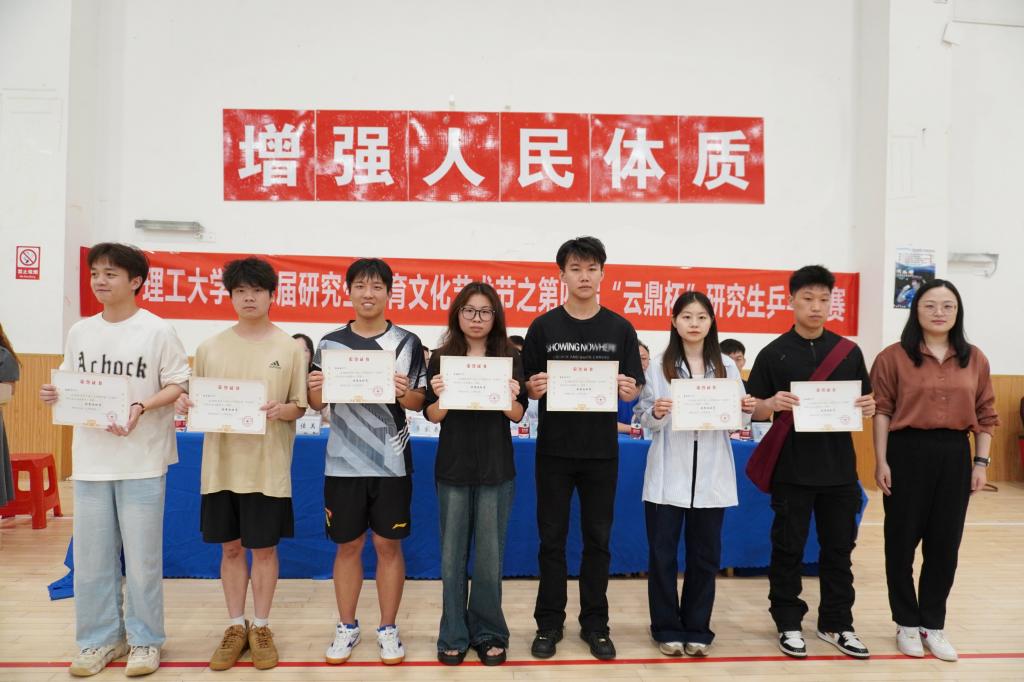 5月25日下午,世界杯官网第四届“云鼎杯”研究生乒乓球赛在云塘校区体育馆负一楼篮球场圆满落幕。化学与医药工程学院党委副书记李家春,数学与统计学院党委副书记郑忠辉,导师代表匡尹杰,研究生院思政教育与管理科李佳美,研究生辅导员江洁、彭峥、王志亮出席,各学院代表队参与此次闭幕式。