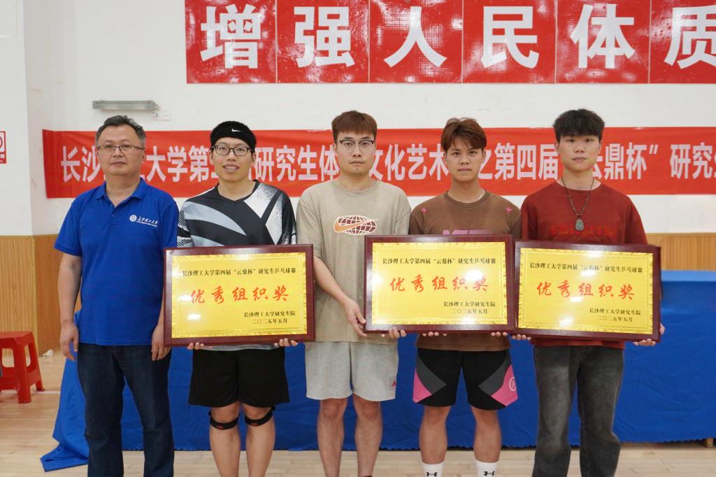 与会领导和老师为获奖团体和个人颁奖。经过八强赛、半决赛和决赛的激烈对抗,水利与海洋工程学院代表队突出重围,获得本届乒乓球赛冠军;交通学院代表队获得亚军;电气与信息工程学院代表队获得季军;交通学院陈韬等15名同学获得“优秀运动员”称号;化学与医药工程学院代表队、数学与统计学院代表队、材料与科学工程学院代表队、物理与电子科学学院代表队获得“优秀组织奖”。