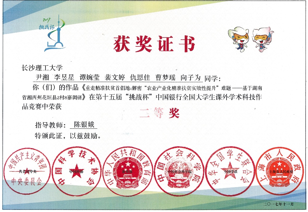 尹湘本科毕业于在线买世界杯平台金融学专业,自2015年起在导师指导下连续5年围绕“农村普惠金融发展与精准扶贫问题”进行暑期三下乡社会实践及理论研究。调研报告《重走精准扶贫首倡地:解密“农业产业化精准扶贫实效性提升”难题——基于湖南省湘西州花垣县2村8寨实地调研》于2017年获湖南省“挑战杯”大学生课外学术科技作品竞赛特等奖、第十五届“挑战杯”全国大学生课外学术科技作品竞赛获全国哲学社科类二等奖。因成绩优异,尹湘同学于2018年推免本校研究生继续深造。