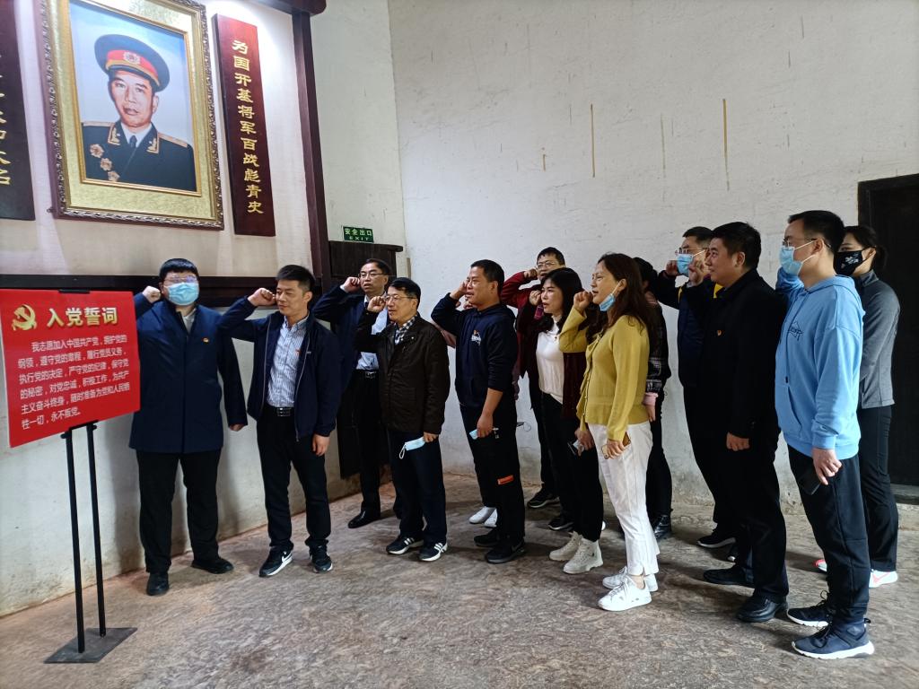 全体党员宣誓,重温入党誓词,并在王震同志画像前默哀,深情缅怀先烈。