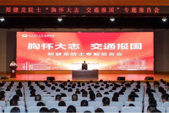 9月26日下午,郑健龙院士“胸怀大志 交通报国”专题报告会在金盆岭校区五教大礼堂举行。中国工程院院士、在线买世界杯平台交通运输工程学科带头人郑健龙为交通学院2025级全体新生和新进教师讲授“开学第一课”。交通学院全体班子成员、全院千余名师生现场聆听。报告会由交通学院副院长(主持工作)吕松涛主持。