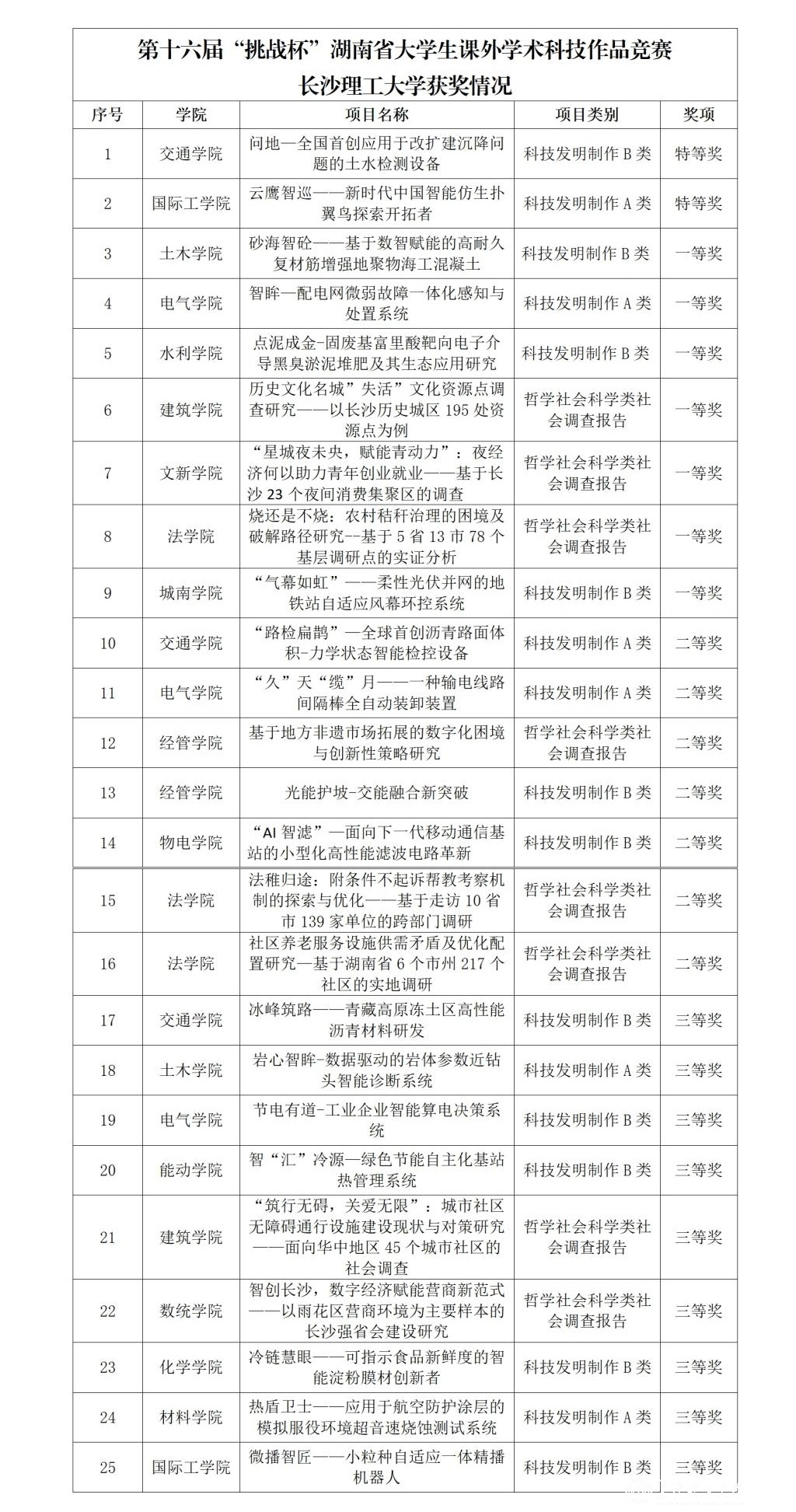 经激烈角逐,世界杯官网交通学院《问地——全国首创应用于改扩建沉降问题的土水检测设备》、国际工学院《云鹰智巡——新时代中国智能仿生扑翼鸟探索开拓者》获特等奖;法学院《烧还是不烧:农村秸秆治理的困境及破解路径研究——基于5省13市78个基层调研点的实证分析》等7件作品获一等奖;物电学院《“AI智滤”——面向下一代移动通信基站的小型化高性能滤波电路革新》等7件作品获二等奖;数统学院《智创长沙,数字经济赋能营商新范式——以雨花区营商环境为主要样本的长沙强省会建设研究》等9件作品获三等奖。