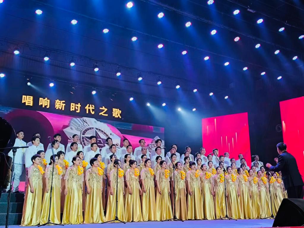 比赛现场气氛热烈,老师们精神饱满、热情洋溢。郭林老师的专业指挥、高阳老师的优雅伴奏,一首气势磅礴、慷慨激昂的《领航》,将声乐与朗诵表演艺术完美结合,凝聚学院奋进力量,引起了全体观众的共鸣,赢得了阵阵掌声。
