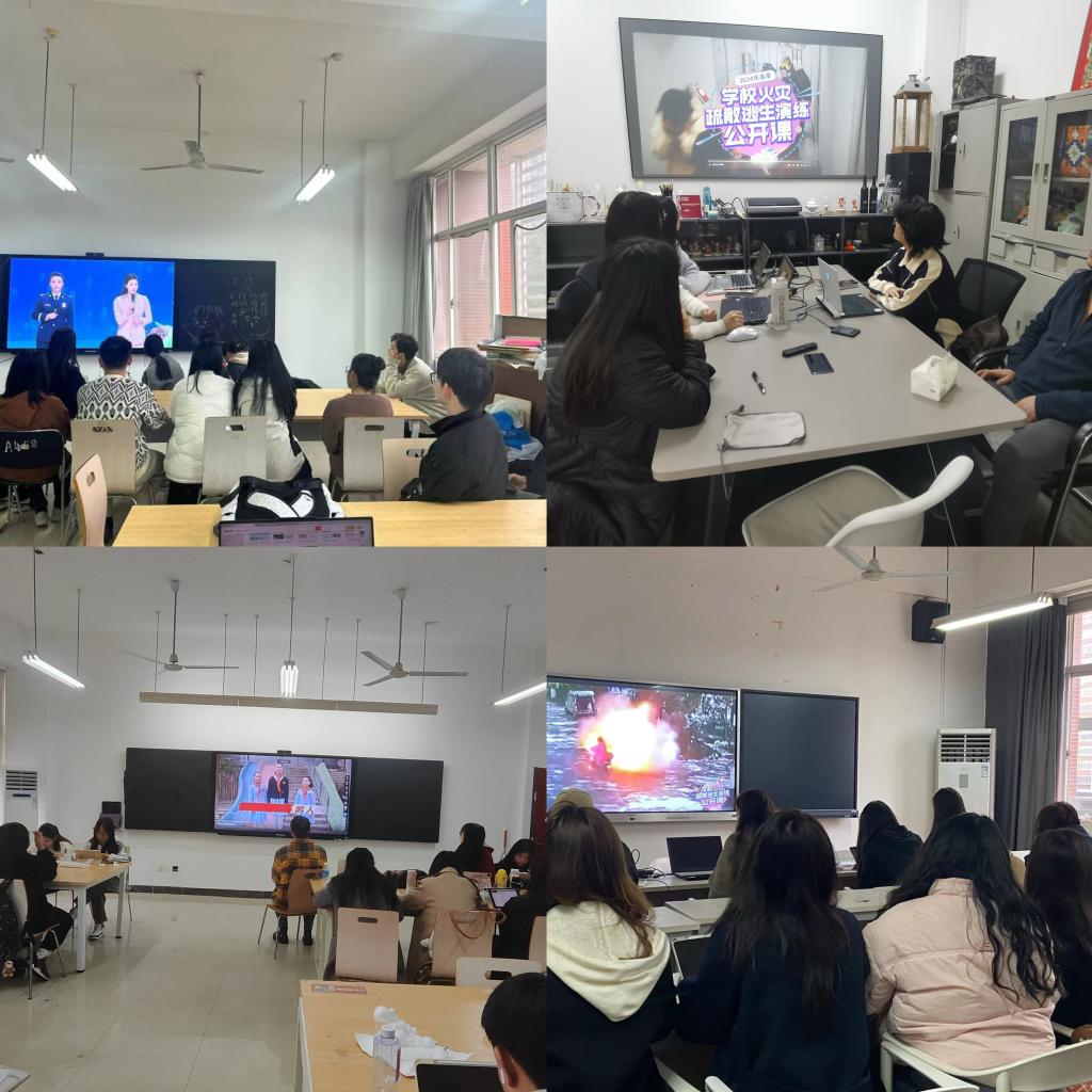 3月15日9时,教育部、国家消防救援局联合举办2024年春季学校火灾疏散逃生演练公开课,通过“中国消防”等网络平台全程直播。为了落实学校关于开展2024年校园安全“百日会战”行动的通知精神,进一步做好校园消防安全管理工作,有效提升学校消防安全管理水平和广大师生消防安全意识,设计艺术学院组织全院学生及教职工分别在艺术楼教室、C320会议室、系部活动室、教研工作室等,通过视频直播方式观看此次学校火灾疏散逃生演练公开课。
