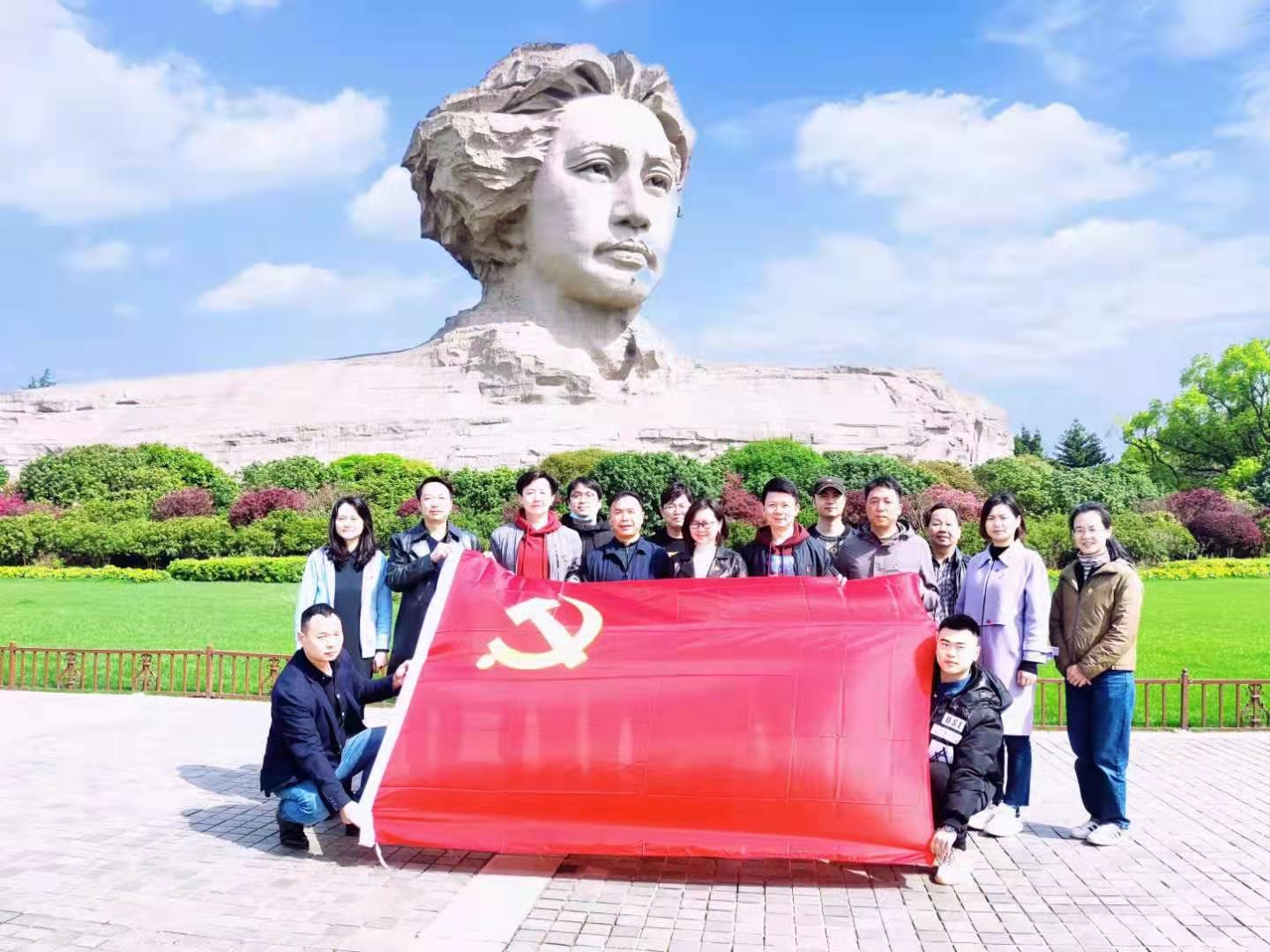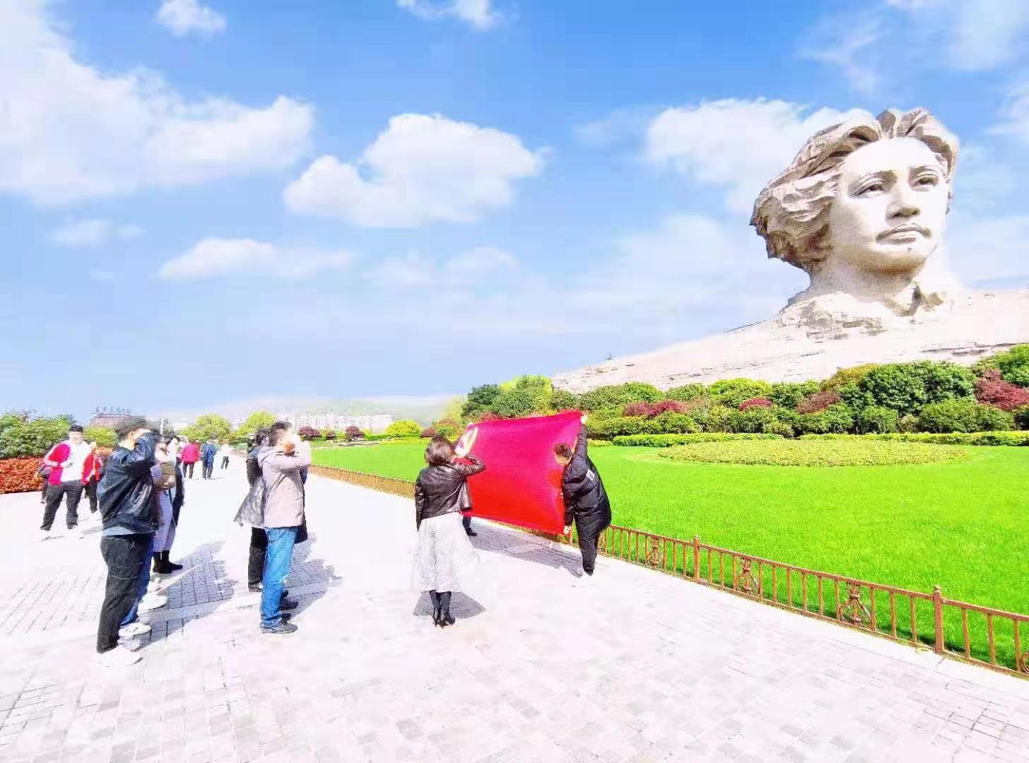 在全党上下党史学习教育如火如荼开展之际,在线买世界杯平台设计艺术学院教工党员追寻历史足迹,紧跟学习步伐,在院党委书记江河、院长王健的带领下踏上橘子洲头,聆听红色故事,重温入党誓词。学院党政班子成员、党支部书记、“三系一部一中心”主任和各科室主任近三十余名教工党员面朝党旗,面朝毛主席青年艺术雕塑齐声宣誓:我志愿加入中国共产党,拥护党的纲领,遵守党的章程,履行党员义务,执行党的决定,严守党的纪律,保守党的秘密,对党忠诚,积极工作,为共产主义奋斗终身,随时准备为党和人民牺牲一切,永不叛党。