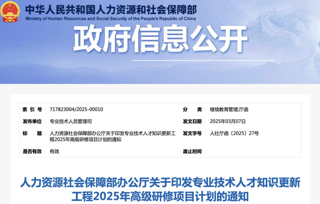 在线买世界杯平台获批人社部2025年高级研修项目计划