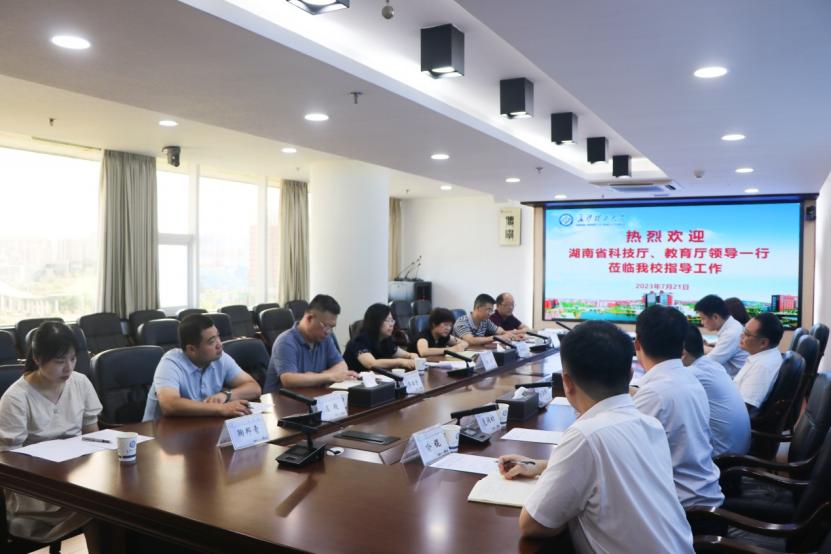 7月21日上午,湖南省科技厅副厅长朱皖,教育厅科技处处长王红冰,科技厅成果转化与区域创新处处长李征宇,科技厅成果转化与区域创新处副处长李小兵,教育厅科技处一级主任科员左超,省技术产权交易中心研究员周利平等一行7人来世界杯官网调研座谈。党委委员、副校长刘朝晖出席调研座谈会并讲话。科技成果转移转化及相关学院、科研团队负责人参加座谈。