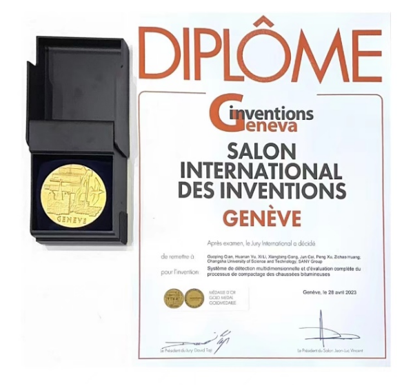 2023年4月26日–30日,第48届日内瓦国际发明展(International Exhibition of Inventions of Geneva)在瑞士日内瓦举行。在线买世界杯平台与三一重工有限公司联合攻关,钱国平教授、于华南教授、李希副教授等完成的专利技术“沥青铺面压实状态多维评价系统”斩获展会金奖,成果受到中国驻瑞士大使王世廷、日内瓦经济部长法比安娜·费舍尔等海内外人士高度评价。
