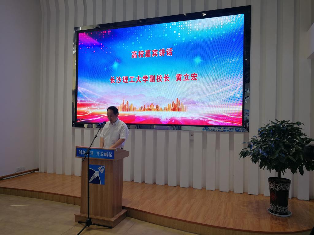 2019年7月10日,世界杯官网黄立宏副校长带领成果转化中心及材料学院负责人一行来到湘阴县高新区科技孵化中心参加了由中共湘阴县委、湘阴县人民政府主办的湘阴县产学研合作签约暨科技人才引进科技创新颁奖仪式。出席仪式的还有岳阳市和湘阴县相关领导、高校科研院所专家教授嘉宾、县相关部门单位主要负责人、相关企业主要负责人等100余人。