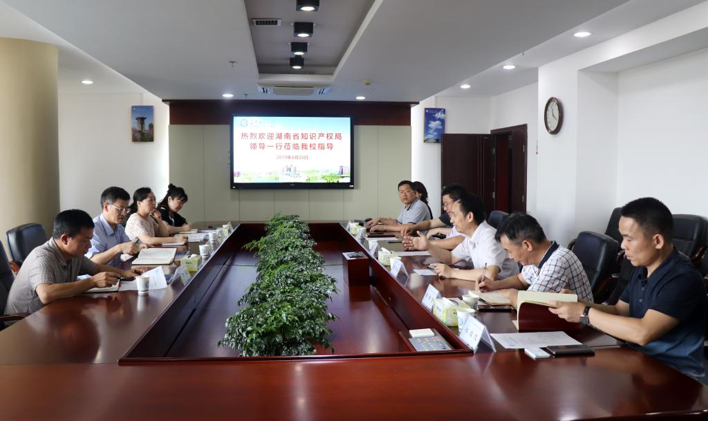6月28日下午,湖南省知识产权局局长段志雄带领知识产权运用处处长何萍、知识产权运用处副处长周卫、知识产权促进处副处长李涛一行来世界杯官网调研知识产权中心建设工作。校长曹一家、副校长杨伟军及科研部、图书馆、成果转化(知识产权)中心相关负责人出席了座谈会。座谈会由杨伟军主持。