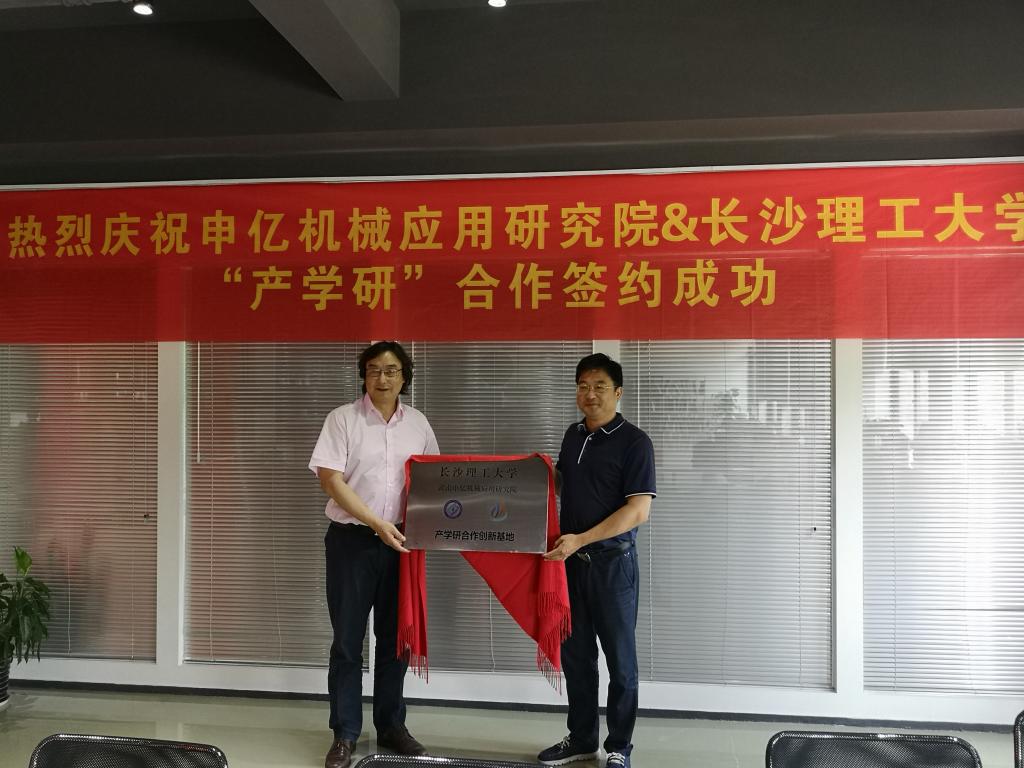 6月4日上午,在线买世界杯平台与湖南申亿机械应用研究院在雨花区国际企业中心举行了产学研合作创新基地揭牌仪式。湖南申亿机械应用研究院董事长刘昆湘、院长王凯波、执行院长易志刚,世界杯官网党委副书记邹宏如,成果转化中心、汽机学院负责人及双方相关专家参加了此次揭牌仪式。