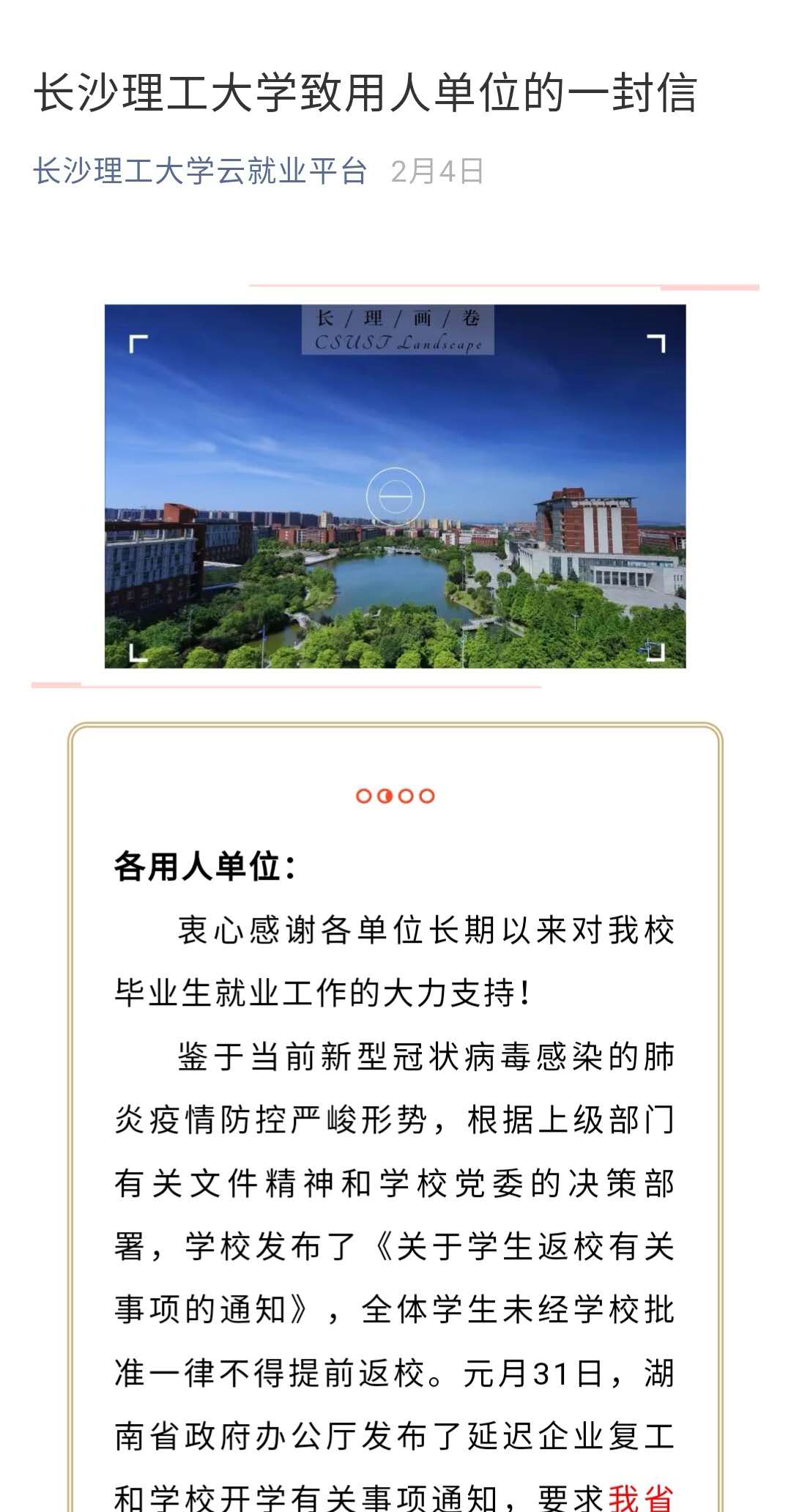 信息发布精准推送环环相扣。2月3日开始发布在线招聘信息,将用人单位的信息分行业、分类别、分时段及时汇总,并将招聘信息精准对接推送给毕业生。截至止目前,学校共收集整理发布企业招聘信息近两千条,坚持每日一汇总、每日一推送。将学生关注度高的中交、中铁工、中铁建、中建和电力能源类企业招聘信息分类汇总并精准推送给毕业生,发布教育主管部门和地方线上招聘会、人才引进计划等综合招聘信息40余条,发布各省市公共就业服务信息平台43个。