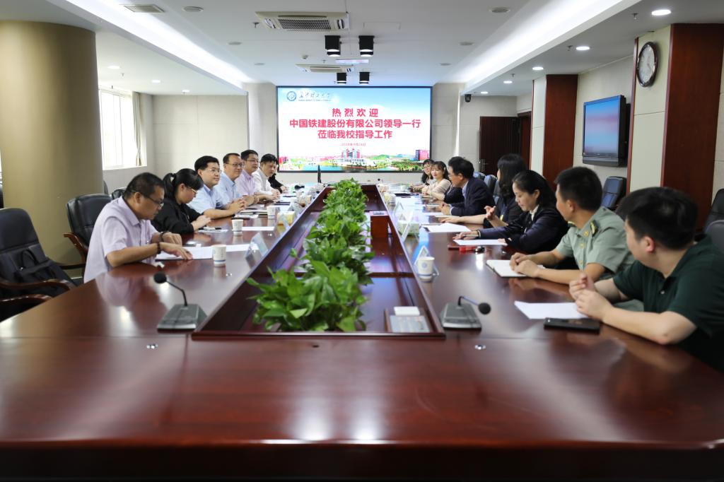 9月24日下午,双方在一办公楼三会议室召开交流座谈会。招生就业处处长曹瑛代表学校对王谐一行表示热烈欢迎,并就世界杯官网在人才培养、科学研究、社会服务等方面的特色以及近年来取得的成果作了简要介绍。王谐介绍了中国铁建的发展历程、业务范围、竞争优势与发展计划。他表示,中国铁建和学校多年来在人才培养、科技创新等方面保持着良好的合作关系,希望双方以“国际后备工程人才班”为契机,加强校企双方的交流,深化更具长效和实效的合作,实现校企双方的共赢。