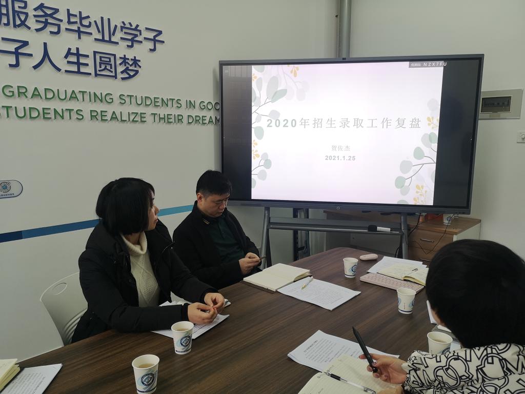 会上,贺佐杰科长对2020年招生录取工作进行了复盘,重点分析了招生录取工作特点及不足,并对2021年的工作进行了展望。马建婧老师对2020年招生宣传调查问卷,以及招生宣传工作中存在的问题进行了分析,并对明年工作进行了畅想。郑纯科长从队伍建设、课程建设、职业发展、实验室建设、精准就业指导、精准就业服务、精品活动打造计划、基层成长引领计划、新媒体宣传等九个方面,对“3+2+2+1”立体式生涯教育体系建设情况进行了总结汇报。梁莹科长对2020年就业工作情况进行了总结汇报,分析了当前面临的形势和存在的问题,汇总了各学院就业工作好的做法,并对下一步重点工作做出了规划。