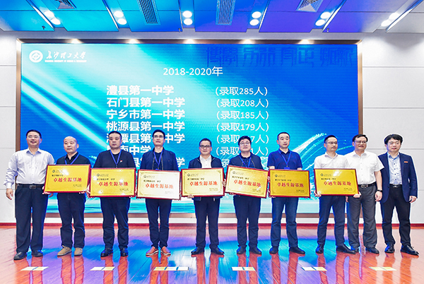 会上还举行了“卓越生源基地”授牌仪式,学校领导为澧县第一中学、石门县第一中学、宁乡市第一中学、桃源县第一中学、湘潭县第一中学、周南中学、新化县第一中学7所中学授牌。近三年,以上7所中学被在线买世界杯平台录取人数高达1242名,形成了协同发展的良性机制,在一流人才培养方面硕果累累。