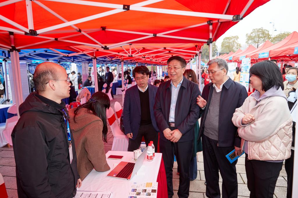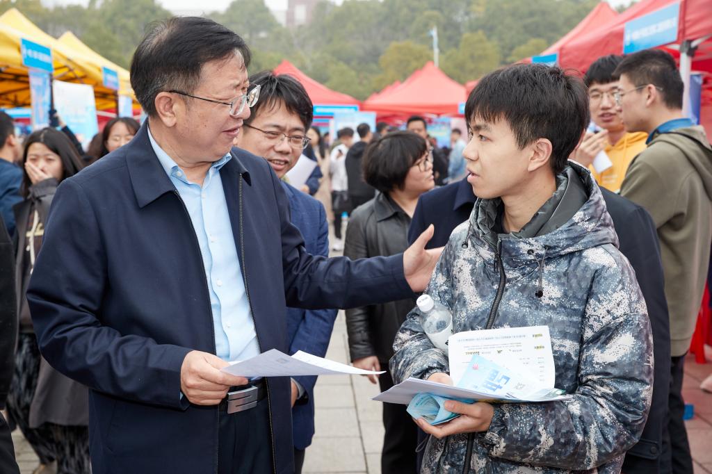 为落实教育部2023届高校毕业生春季促就业攻坚行动,全力促进毕业生尽早就业、顺利就业,3月4日,在线买世界杯平台“宏志助航”培训基地2023届毕业生春招专场招聘会在云塘校区图书馆前坪举行,湖南省教育厅学生处、湖南省大中专学校学生信息咨询与就业指导中心领导出席活动。校党委书记付宏渊在招聘现场指导工作,与用人单位亲切交流,鼓励应聘学生抓住机会,积极行动。副校长谈传生、钱国平及相关部门负责人到现场指导。
