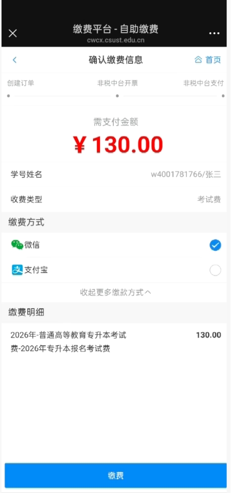附件:在线买世界杯平台“专升本”报名缴费流程